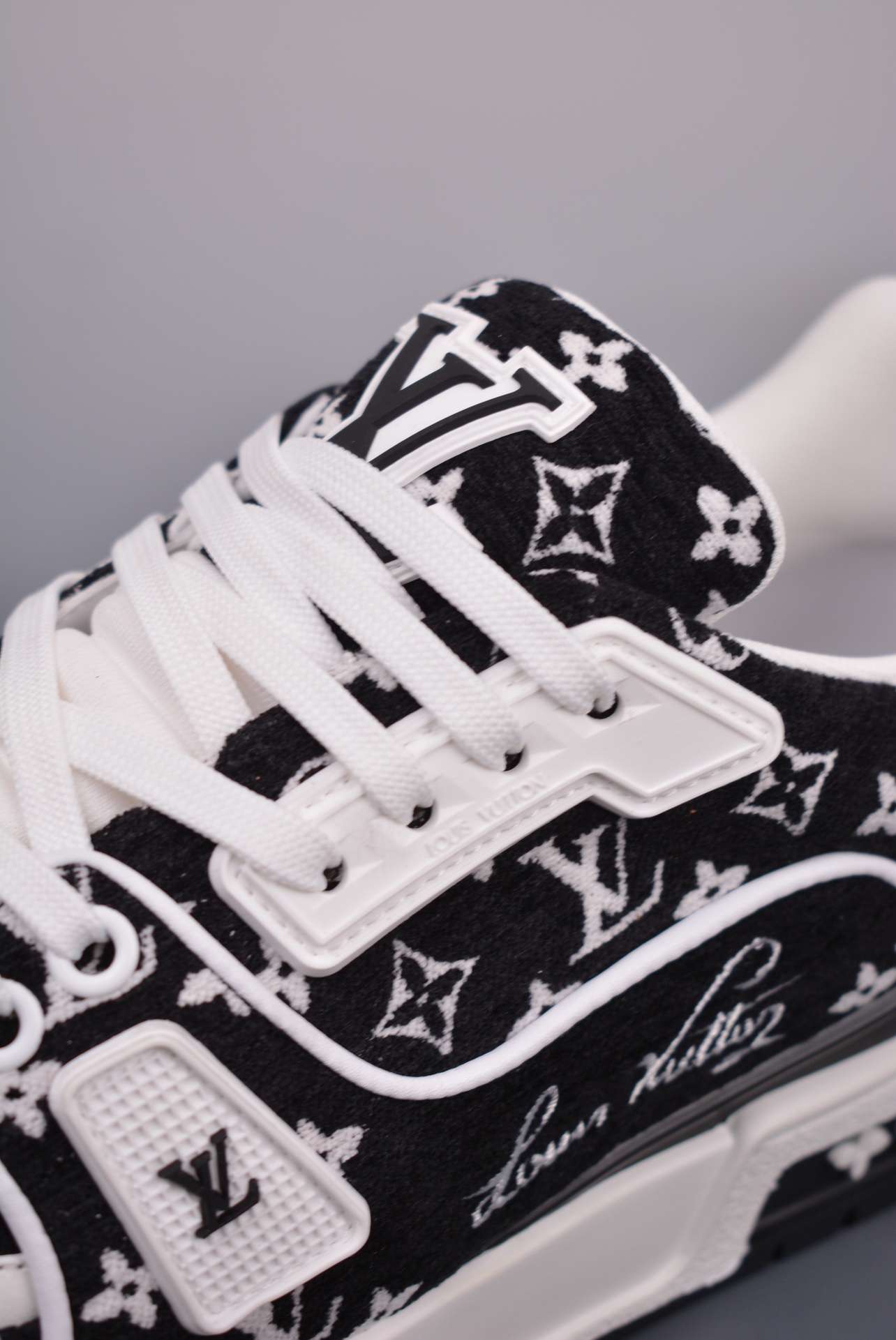 Be the first to review “Kickswho LV Louis Vuitton Trainer Black Monogram Textile”